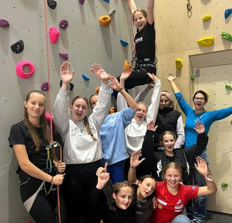 Im Rahmen der Aktion "Klettern macht Schule" des Alpenvereins waren die Mädels der 4. Klassen am Dienstag, den 21.10.25 in der Kletterhalle der Bergrettung Neukirchen und konnten sich im Klettern üben.